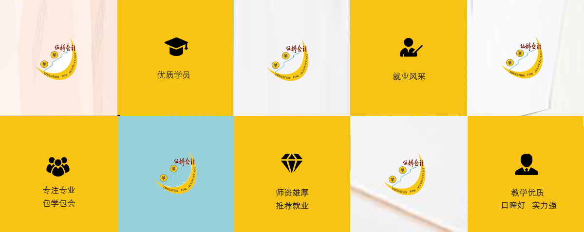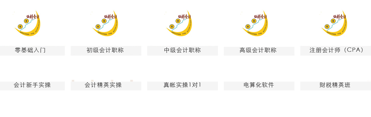 课程设置:职称考证(初级、中级) 真账实操、税务师、其它会计辅助性课程。
